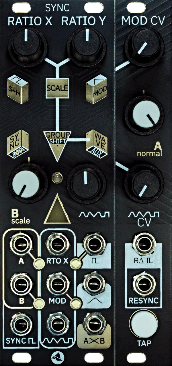 SYNC generates a sculptable wavetable oscillator that locks to the frequency and phase of an external clock, with extensive clock multiplication and division ("ratio") control.